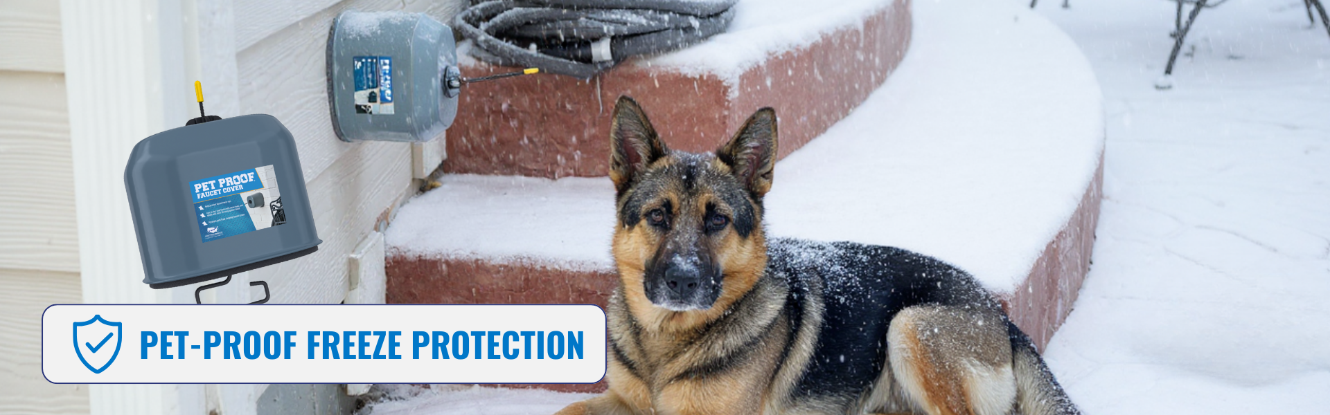 Cold Front Products Pet-Proof Faucet Covers shield outdoor spigots from bitter cold and curious jaws. Install in under a minute - no tools, no hassle.