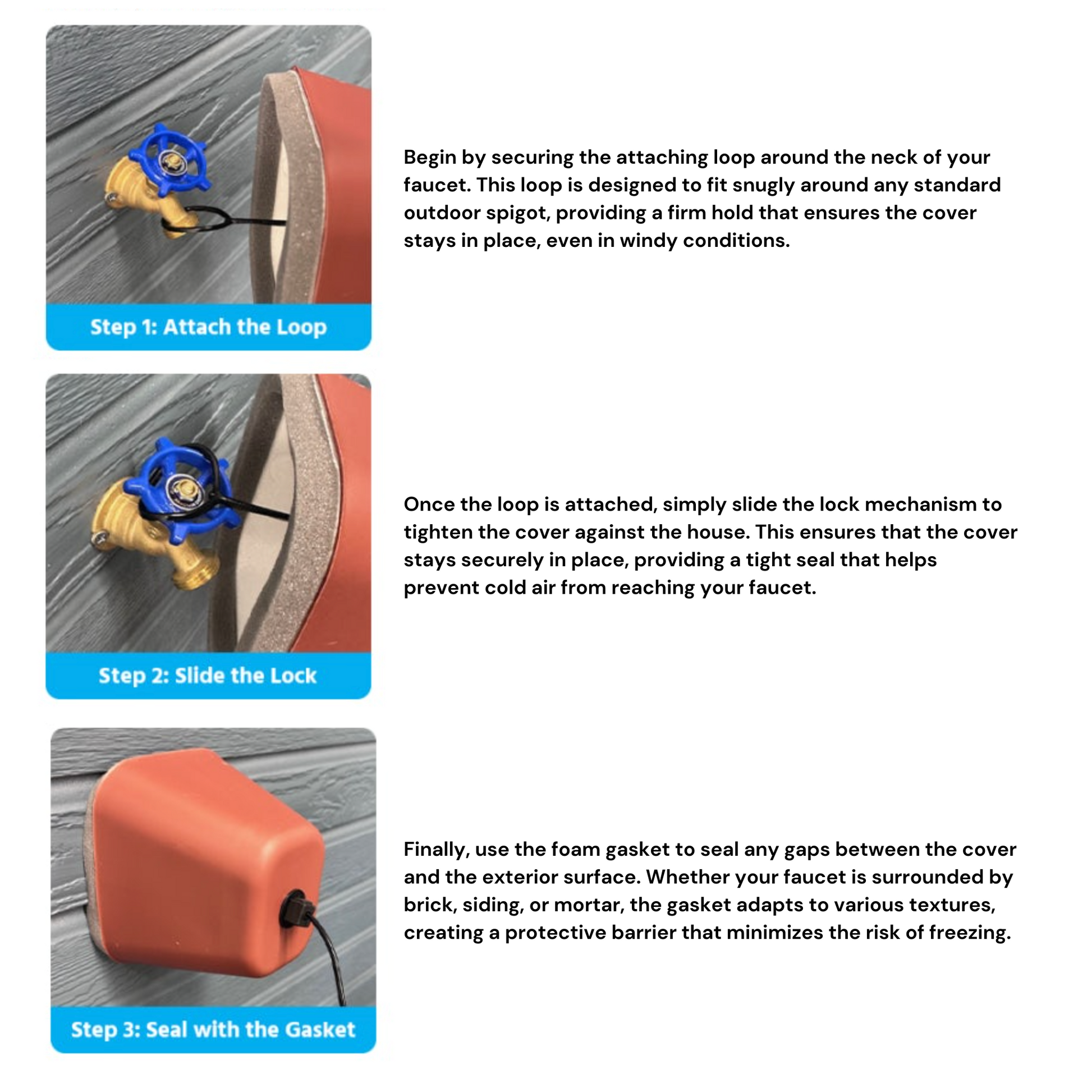 Our hard cover design provides robust protection against the cold, helping to prevent freeze-ups and potential pipe bursts. Each cover is crafted to fit securely over any outdoor faucet, offering an added layer of insulation that keeps the cold at bay.